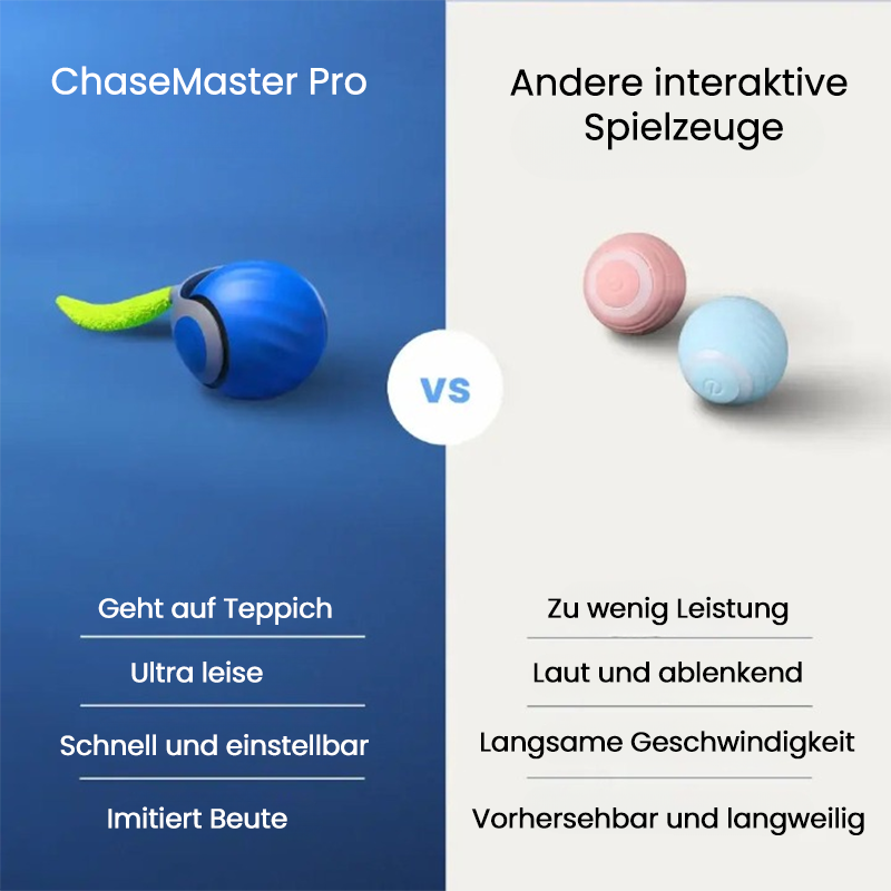 Haben Sie genug von Katzenspielzeugen, die ihre Versprechen nicht halten? Zu langsam, zu laut, langweilig... und am Ende unter einem Möbelstück vergessen? Der ChaseMaster Pro ändert alles! Entwickelt, um den natürlichen Jagdinstinkt Ihrer Katze zu wecken, bietet dieses interaktive Hochgeschwindigkeitsspielzeug stundenlangen Spaß– selbst wenn Sie nicht zu Hause sind.