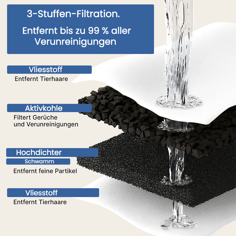 🐾 Dreifach-Filter: entfernt 99 % aller Verunreinigungen